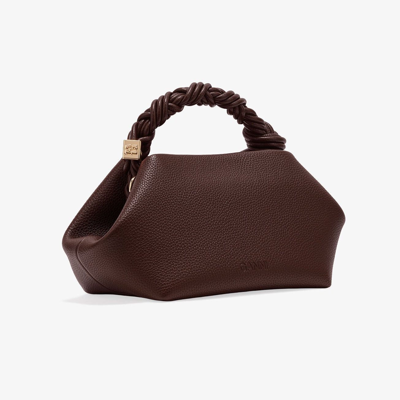 Made from a blend of recycled leather, GANNI's Small BOU Bag features a tone-on-tone metallic GANNI Butterfly logo, a twisted handle with a braided knot, and a gold-tone metallic dice with an engraved GANNI Butterfly logo.