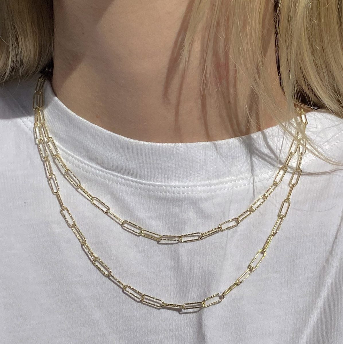 Crafted with a diamond-cut technique, is has a subtle yet noticeable shimmer. Perfect solo or stacked with longer chains.