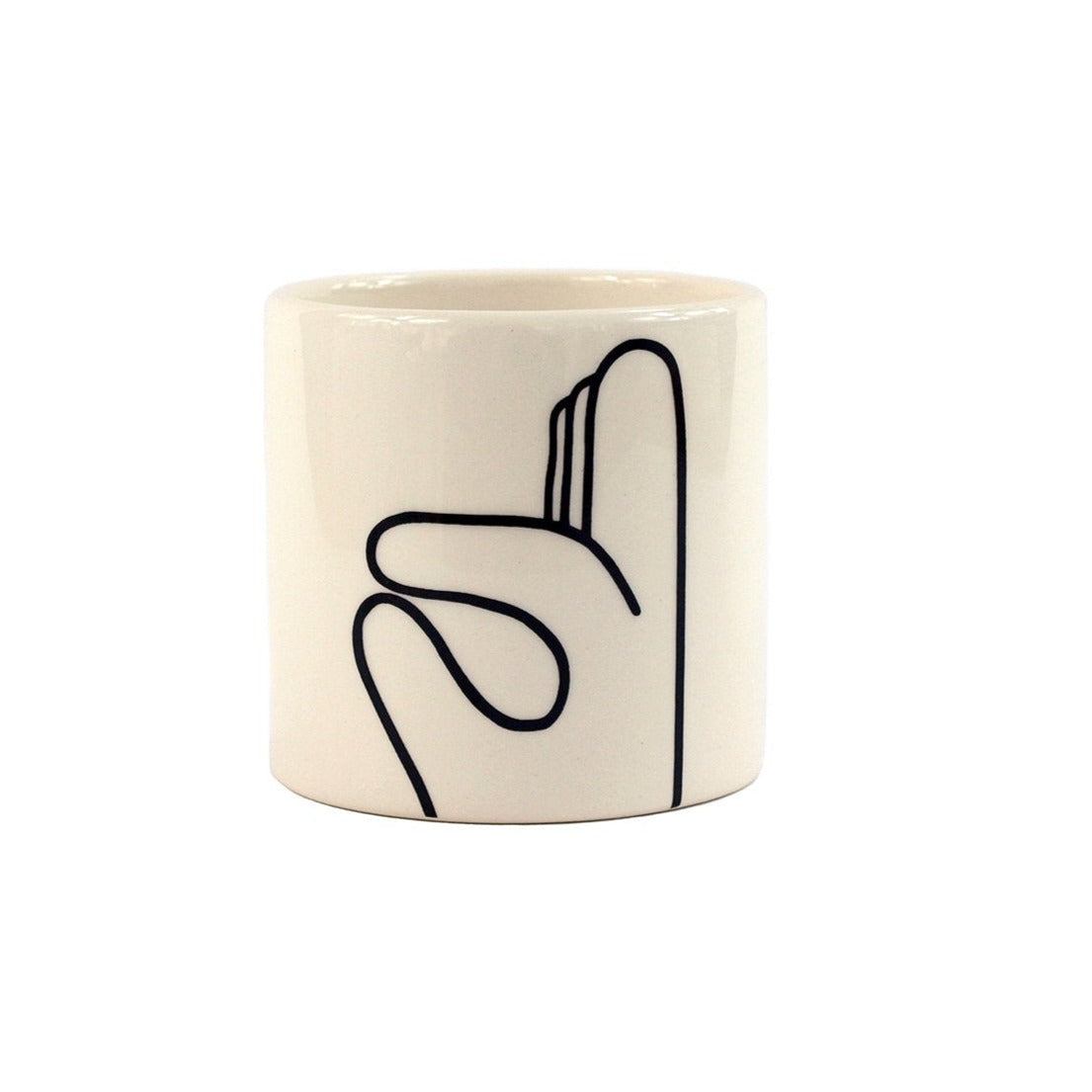 White earthenware mini pot by Louise Madzia - Slip-cast by hand in Stoke-on-Trent, with a screen-printed OK decal design.