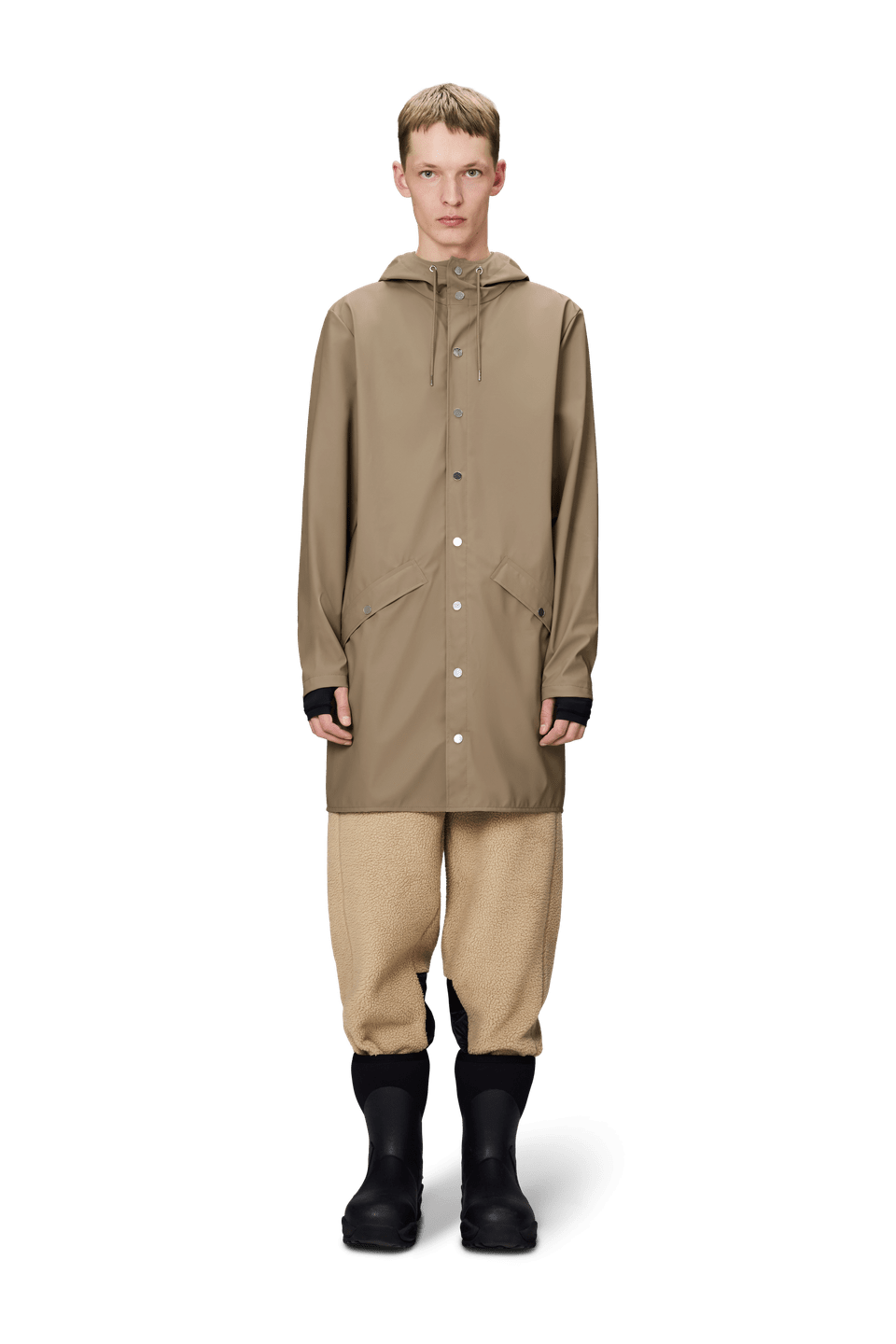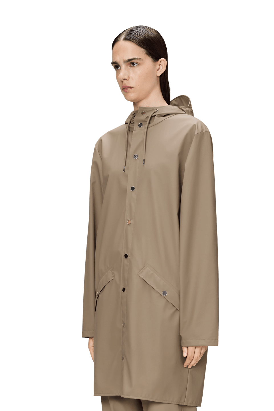Cut from Rains' signature PU fabric, their Long Jacket style is an ever-contemporary unisex rain jacket characterized by a minimal silhouette in a long design.