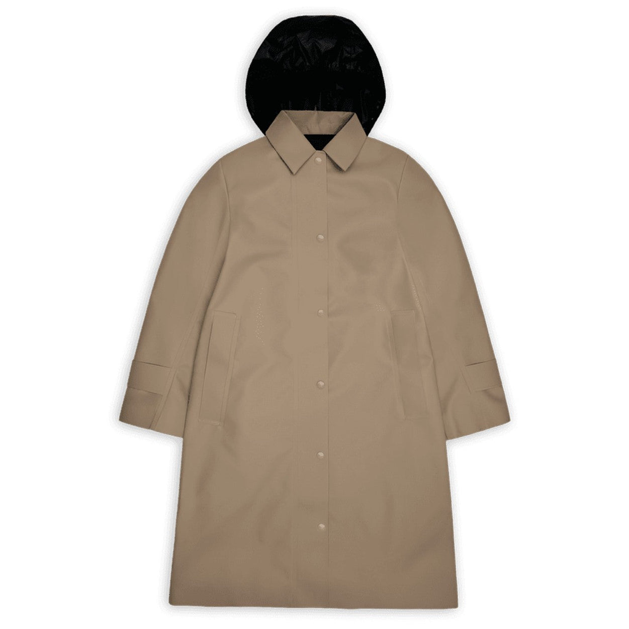 This long waterproof jacket is cut from Rains’ signature PU fabric with a strong and durable woven backside. The finish is clean with a sharpened look and a smooth feel.