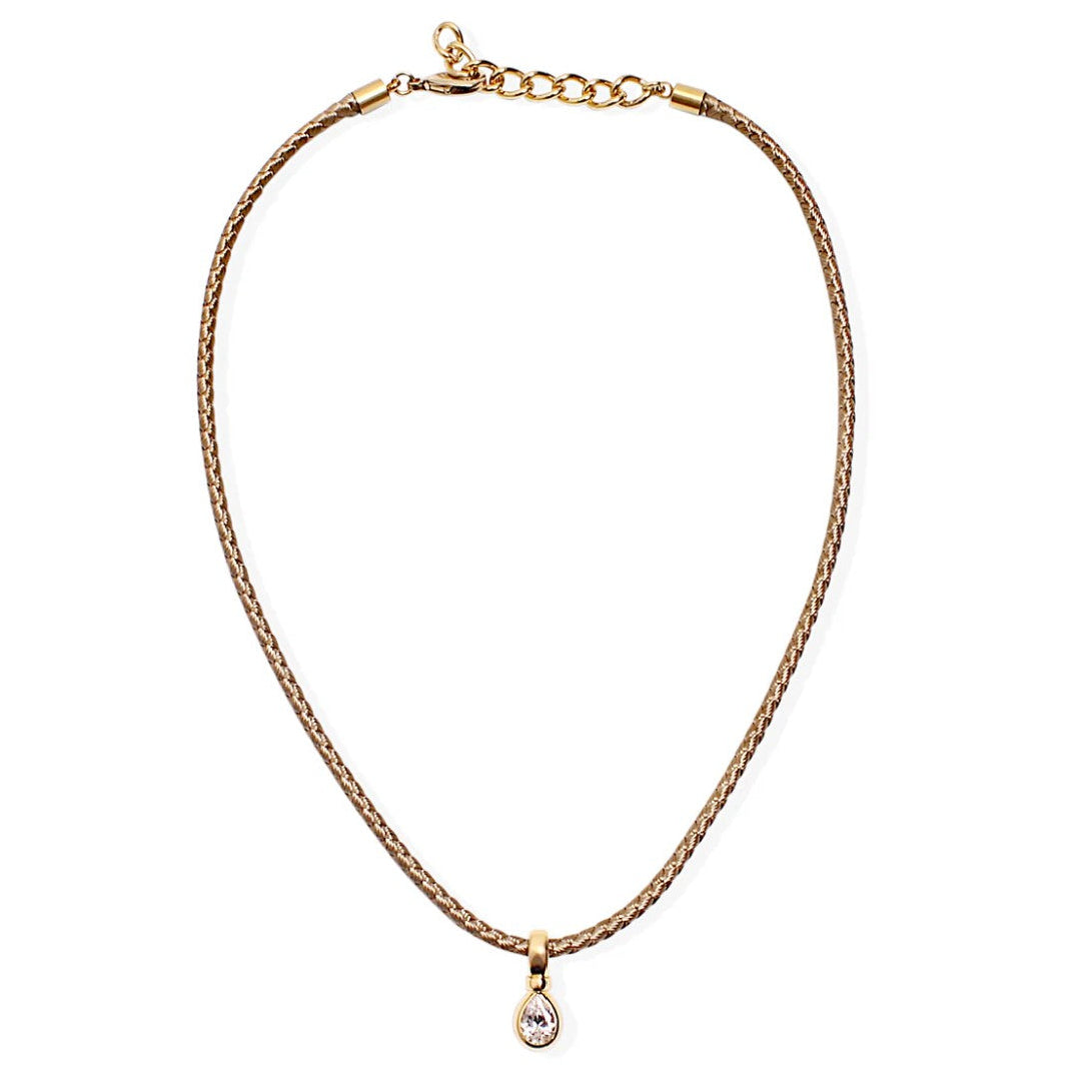 A sleek everyday piece with a touch of shine - By Alona's Auralis necklace is made from taupe raided cord, and finished with their signature 18kt gold-plated teardrop pendant which has been hand-set with a sparkling cubic zirconia stone.