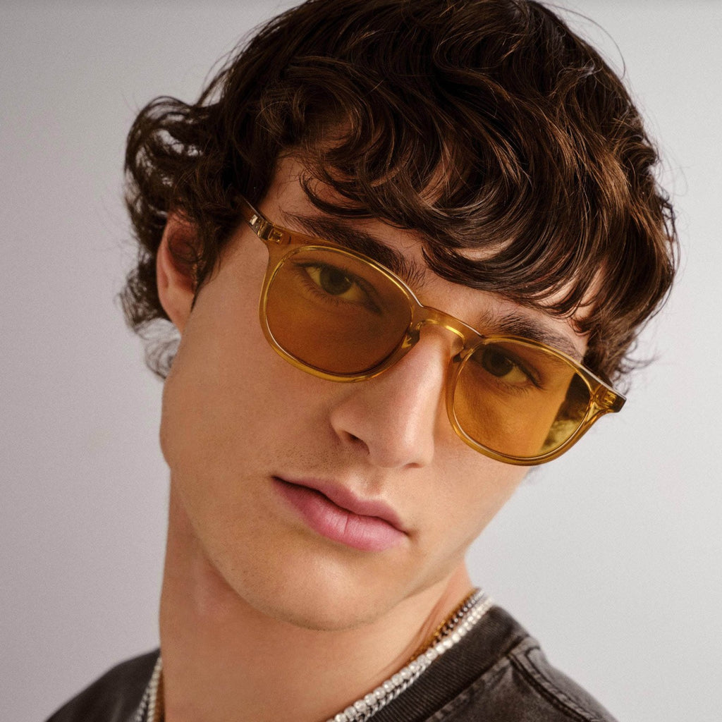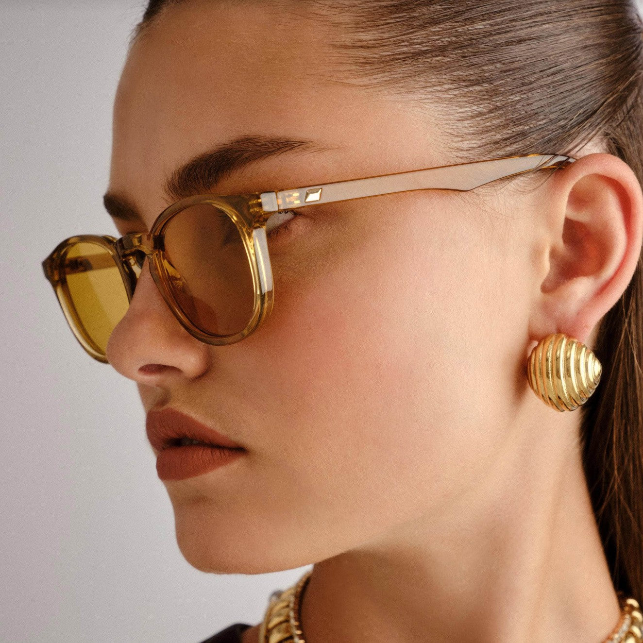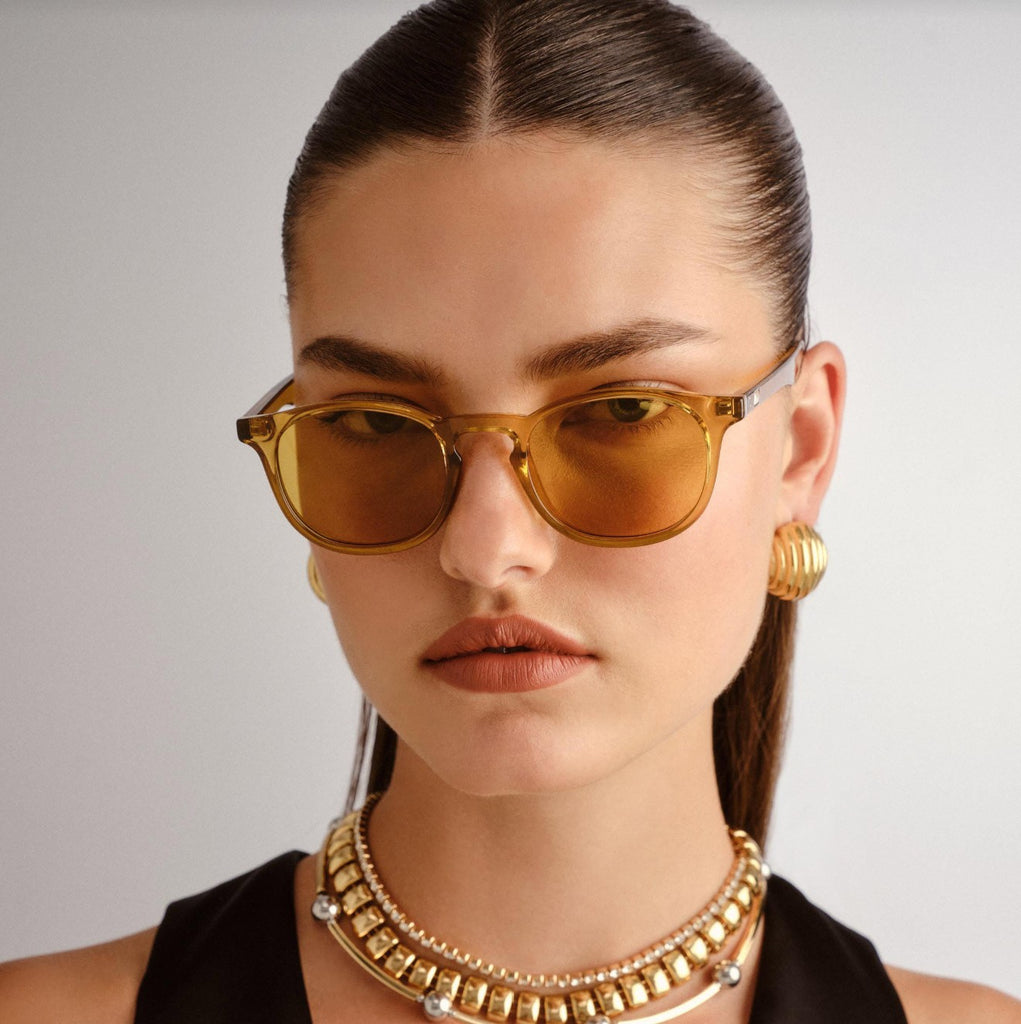 Designed with a refined rounded frame and European-inspired proportions, and finished in a whiskey frame with ochre mono lenses, these versatile mid-sized unisex sunglasses will suit all face shapes.