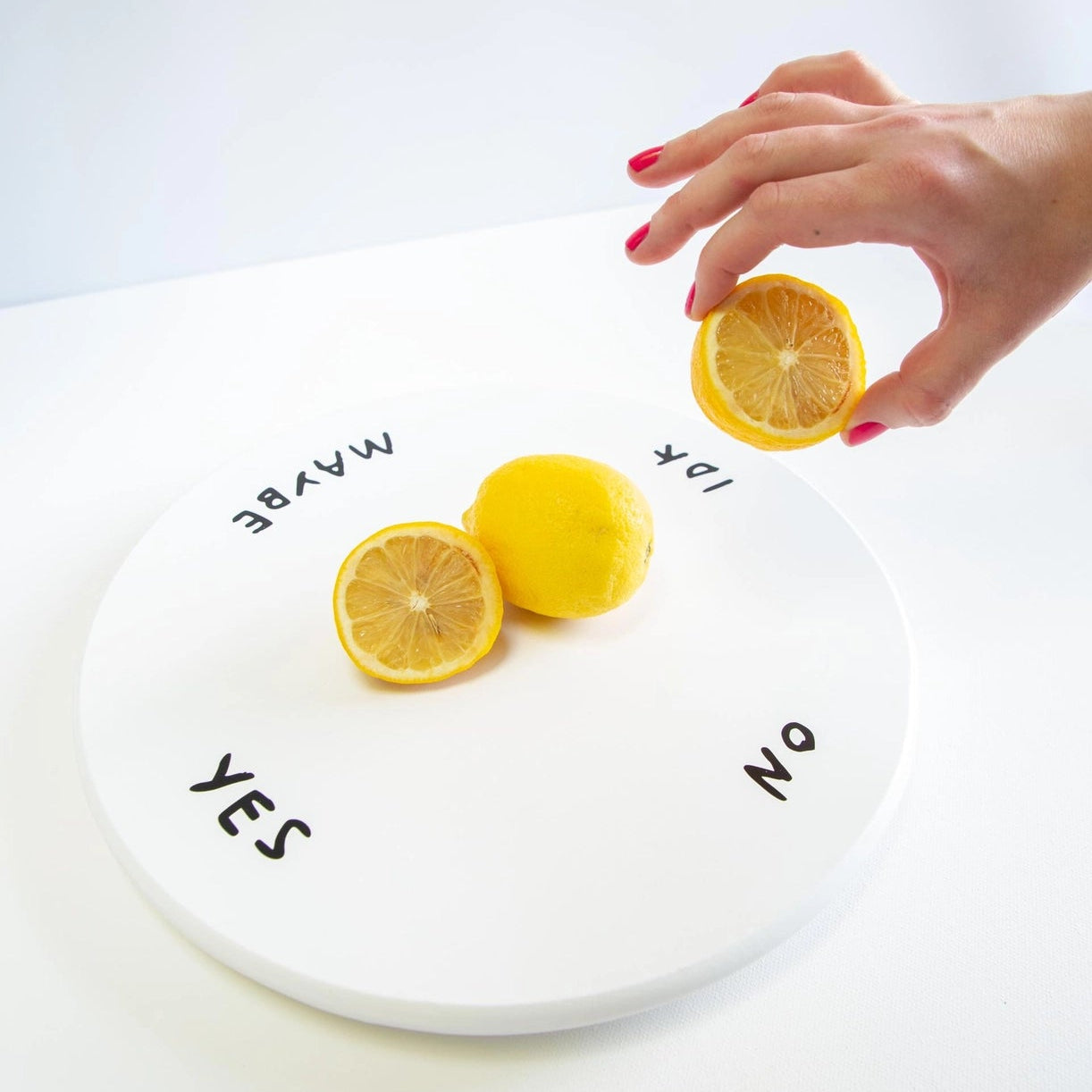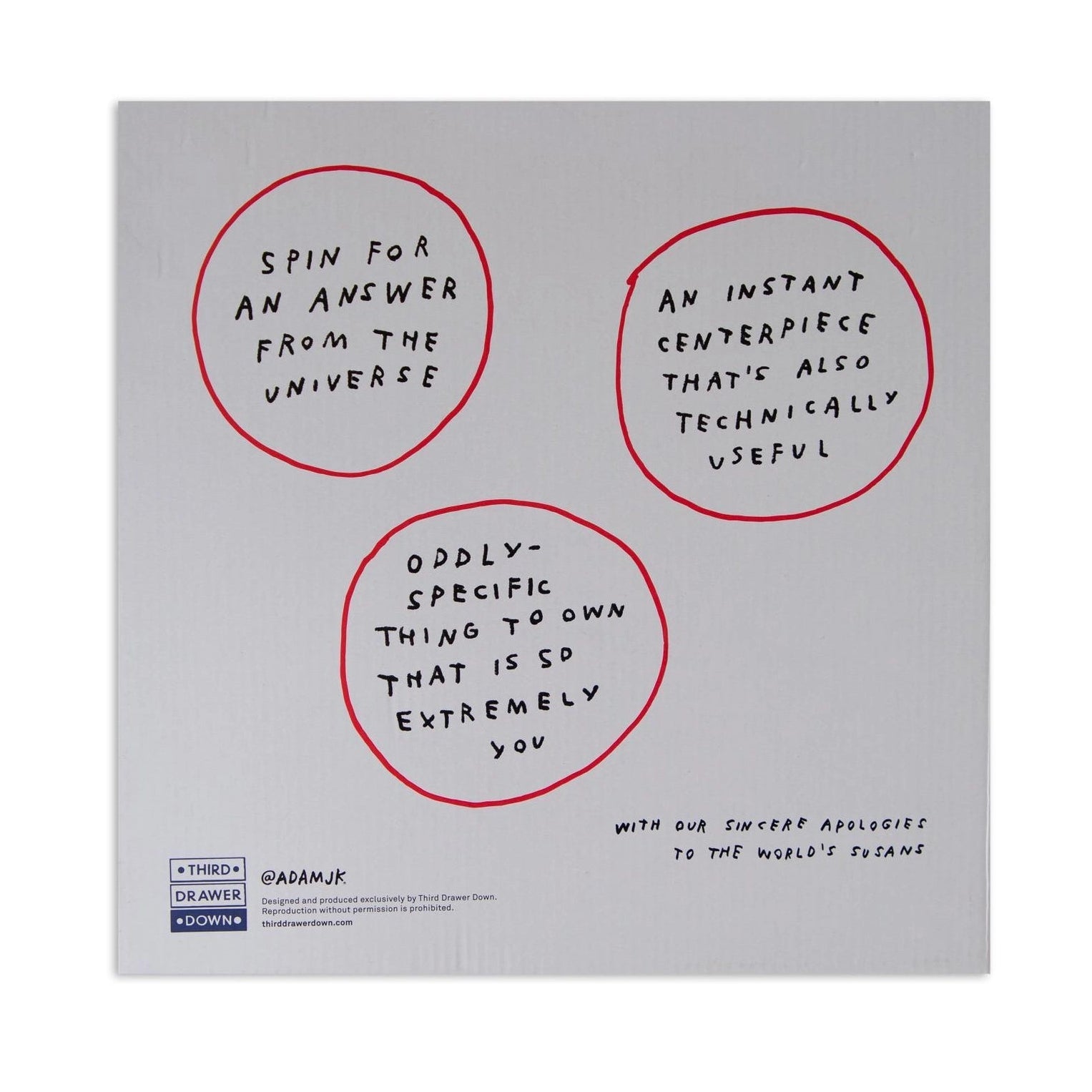Introducing the "Indecisive Lazy Susan" by Third Drawer Down X Adam JK — a whimsical and witty solution for those moments of indecisiveness. Spin the Indecisive Lazy Susan and let fate take the wheel as it determines your next move.