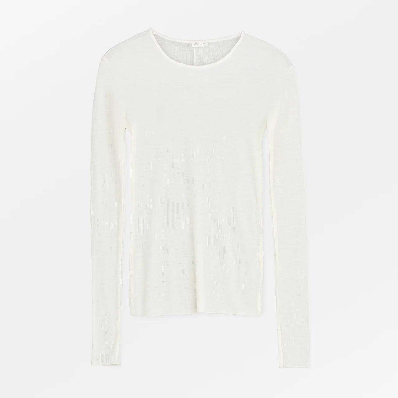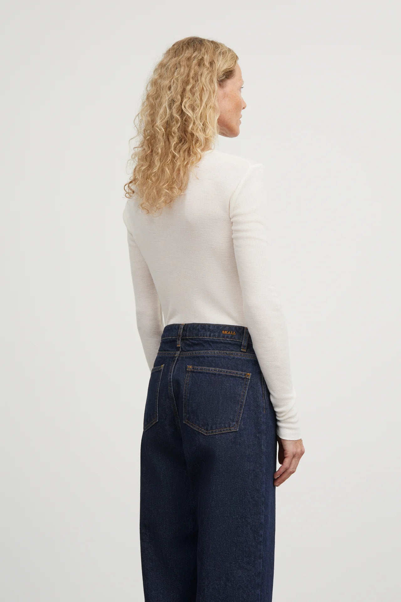 Skall Studio's Amy blouse is made in 100% GOTS certified, organic merino wool in a soft rib quality that gently hugs the body.  Perfect for layering, it is designed with a round neck, long sleeves, and baby lock finishes.