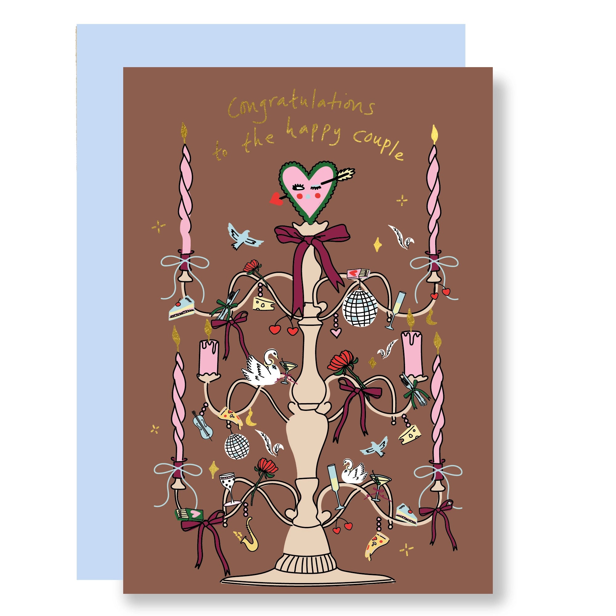 A whimsical wedding day greeting card by Eat the Moon, featuring a wedding candelabra with main character energy.